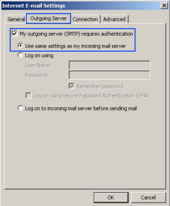 For example, for Gmail, if you use the following (from Outlook account setup), you will enter the information highlighted in the pictures below into Email Configuration.