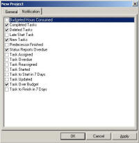 4. From the Notification tab check the checkbox next to the fields that the Project Manager wants to receive Notifications to the project.